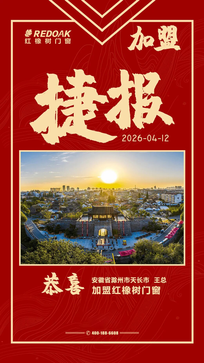 门窗快讯|热烈祝贺安徽省滁州市天长市王总加盟红橡树门窗